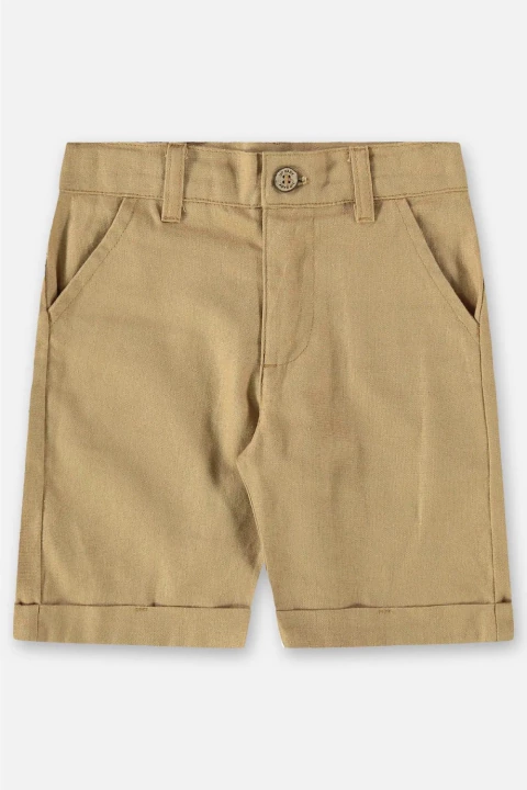 Bermuda infantil confeccionada em linho, ideal para proporcionar conforto e estilo aos pequenos. Esta peça possui presilhas para cinto, bolsos frontais com acabamento decorativo, e uma braguilha funcional com zíper para os tamanhos maiores, garantindo praticidade. A cintura ajustável com elástico e o fecho por botão asseguram um ajuste perfeito. A bainha e a costura reforçada garantem durabilidade, tornando esta Bermuda uma escolha prática e elegante para o dia a dia.