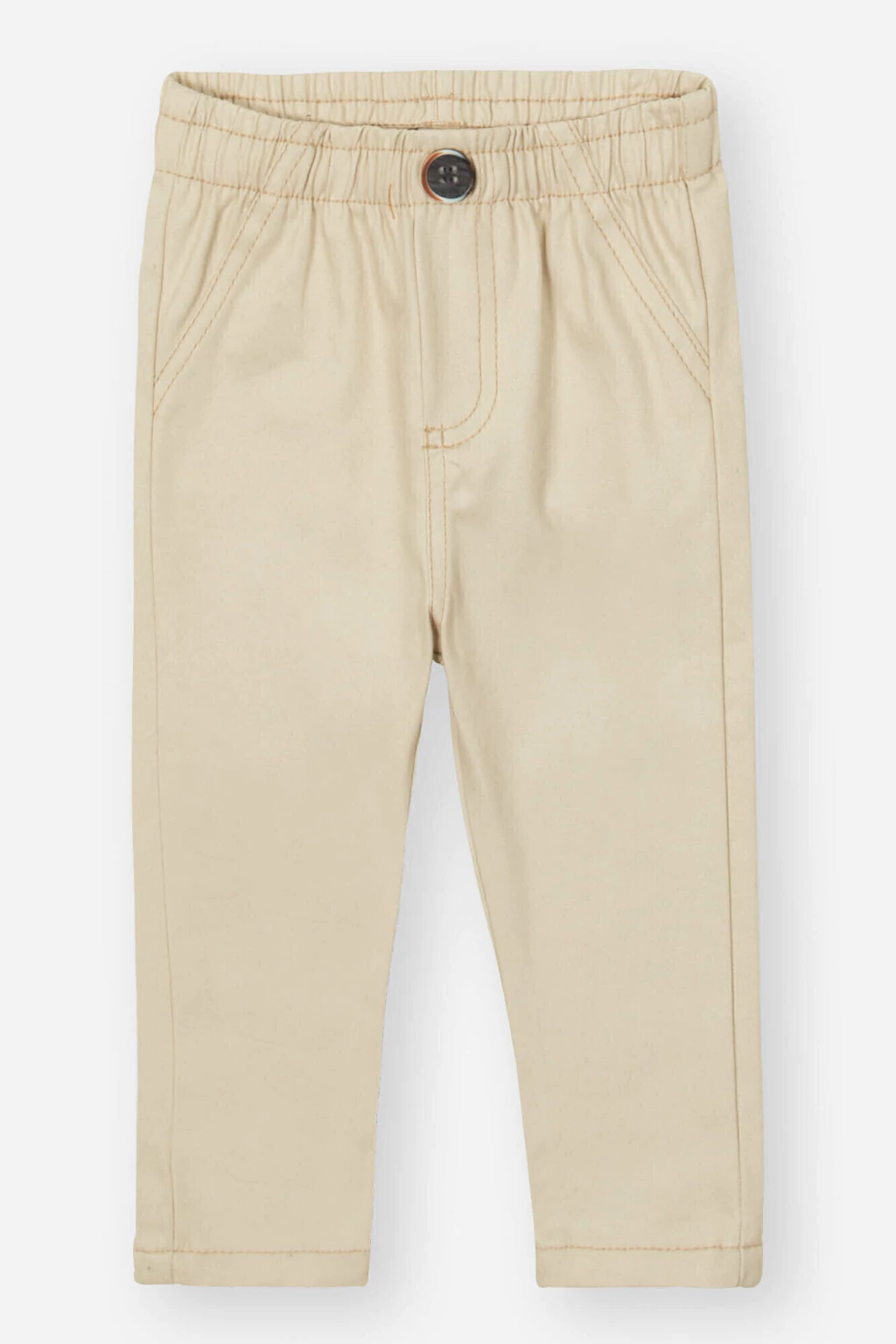 A calça para bebê em sarja peletizada com elastano é a combinação perfeita de conforto e estilo. Com elástico na cintura, oferece maior conforto para o bebê durante o dia todo. O transpasse no cós com botão rajado adiciona um toque de sofisticação, enquanto os bolsos facas falsos e a bragilha falsa criam um visual moderno. Os bolsos traseiros funcionais completam o design, e a modelagem skinny garante um ajuste perfeito. Uma peça versátil que proporciona conforto e estilo para o bebê em qualquer ocasião.
