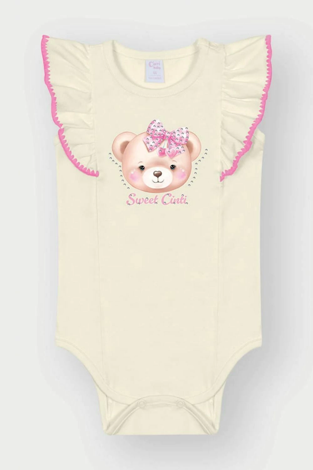 CONJUNTO BEBÊ MENINA CINTI, BODY MANGA CURTA COM BABADOS, BOTÃO NO OMBRO E ENTRE PERNAS, FACILITANDO AS TROCAS, NA COR NATURAL COM ESTAMPA DE URSA E APLIQUES EM STRASS E SAIA/SHORT TODO EM ESTAMPA DE URSINHAS, NA COR ROSA CONFETE, CÓS ELÁSTICO COM LAÇO DECOTATIVO E PLAQUINHA DE METAL DA MARCA PRÓXIMO A BARRA. UM CONJUNTO CHEIO DE ESTILO E MUITO CONFORTO PARA AS BEBÊS.