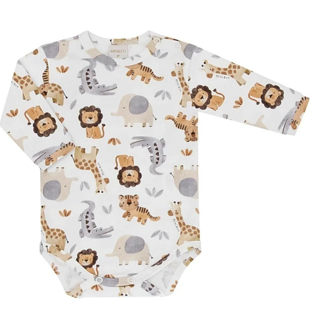 Body manga longa em algodão egípcio na cor marfim com estampa Roar e calça (Mijão) em algodão egípcio na cor caramelo. Fácil de vestir, o body possui abotoamento de pressão no ombro e entre as pernas. A Calça possui pé reversível nos tamanhos "RN" e "P" e punho nos tamanhos "M", "G", "GG", "1" e "2", com o pé reversível é possível usar a mesma peça de duas formas diferentes, "com pé" ou "sem pé", tornando o aproveitamento da peça maior, utilizando na forma "sem pé" com um sapatinho. Ideal para a mamãe que se preocupa com o conforto do seu bebê!