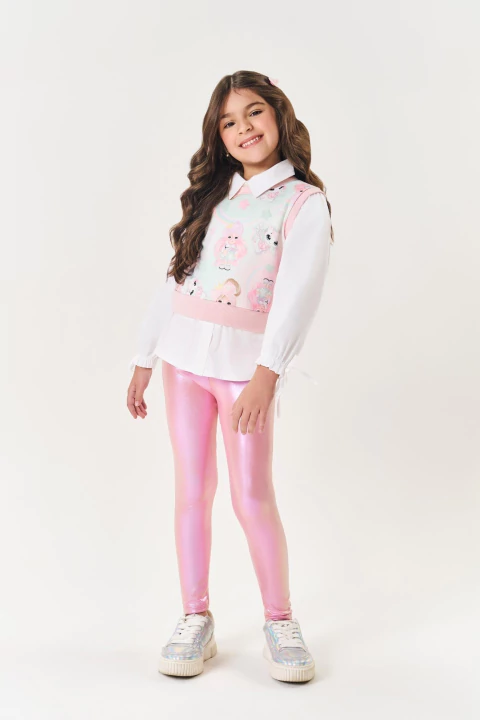 Este conjunto é a escolha perfeita para as pequenas que amam brilho, conforto e estilo! Ideal para criar looks modernos, despojados e cheios de personalidade durante os dias mais fresquinhos.