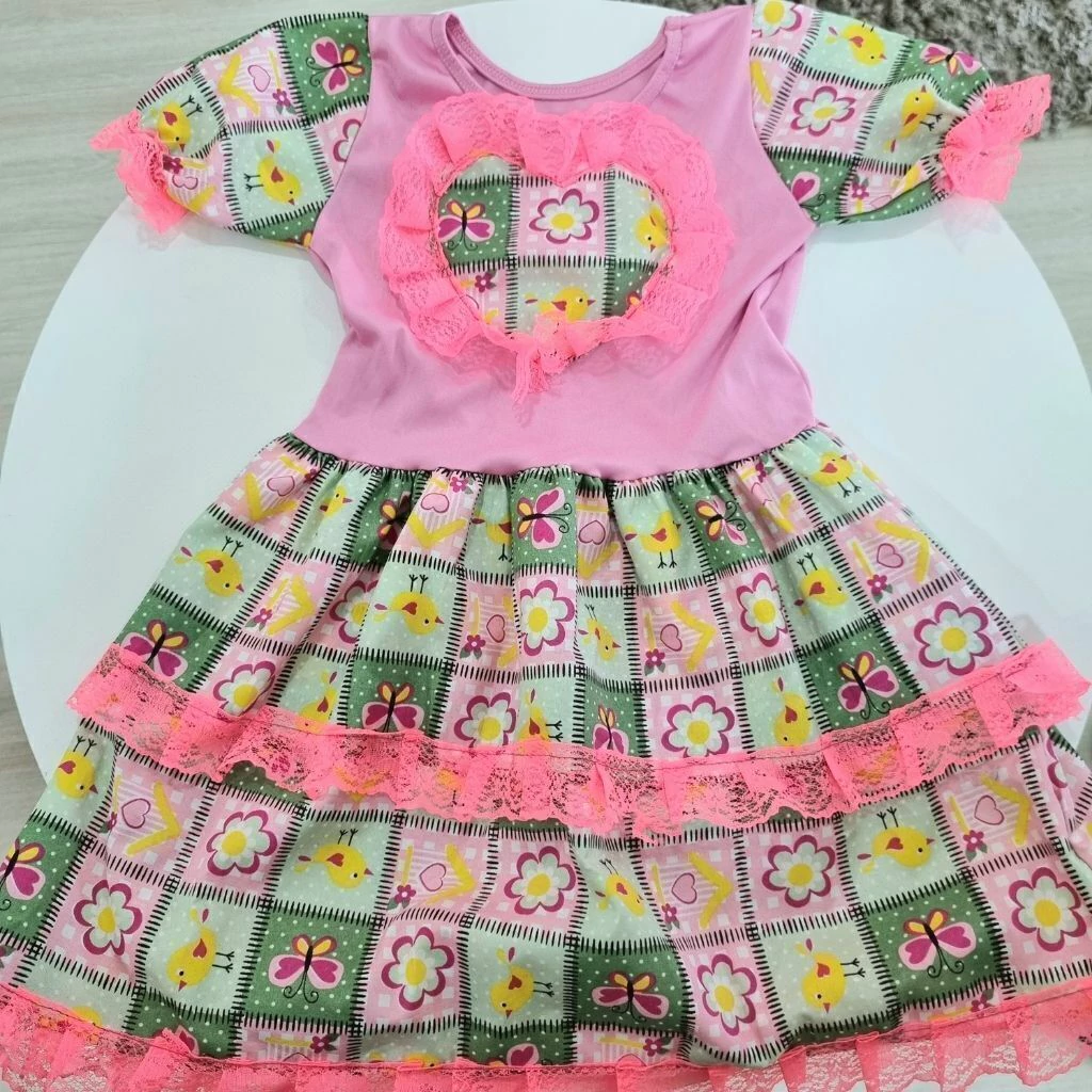 VESTIDO PARA FESTA JUNINA INFANTIL COM CORPETE EM HELANCA E SAIA DE BABADOS EM ALGODÃO, COM DETALHES EM RENDA, MANGUINHA BUFANTE, SUPER LEVE E CONFORTÁVEL, PARA SUA CAPIRINHA CURTIR O ARRAIÁ.